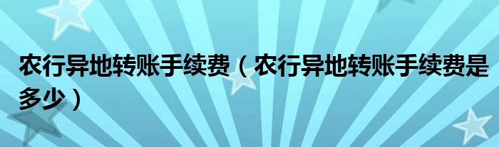 大家好,雨雨来为大家解答以上问题,农行异地转账手续费,农行异地转账手续费是多少很多人还不知道,现在让我们一起来看看吧!