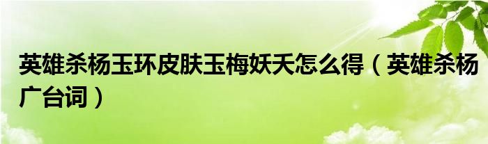 大家好,雨雨来为大家解答以上问题,英雄杀杨玉环皮肤玉梅妖夭怎么得,英雄杀杨广台词很多人还不知道,现在让我们一起来看看吧!