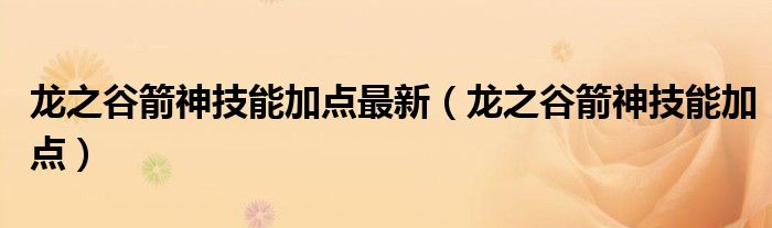 大家好,雨雨来为大家解答以上问题,龙之谷箭神技能加点最新,龙之谷箭神技能加点很多人还不知道,现在让我们一起来看看吧!
