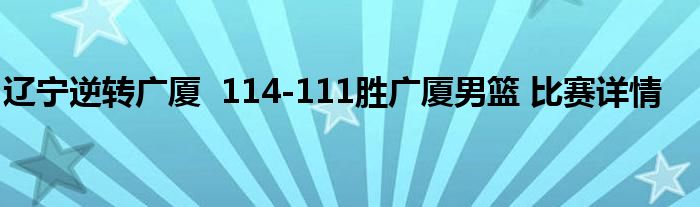 大家好.我是互联百科的羽儿,现在为大家解决以上辽宁逆转广厦 114-111胜广厦男篮 比赛详情的问题.