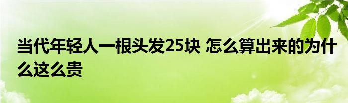 大家好.我是互联百科的羽儿,现在为大家解决以上当代年轻人一根头发25块 怎么算出来的为什么这么贵的问题.