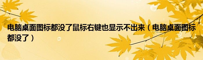 大家好,雨雨来为大家解答以上问题,电脑桌面图标都没了鼠标右键也显示不出来,电脑桌面图标都没了很多人还不知道,现在让我们一起来看看吧!