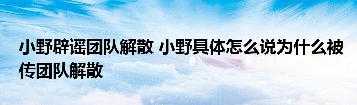 大家好.我是互联百科的羽儿,现在为大家解决以上小野辟谣团队解散 小野具体怎么说为什么被传团队解散的问题.