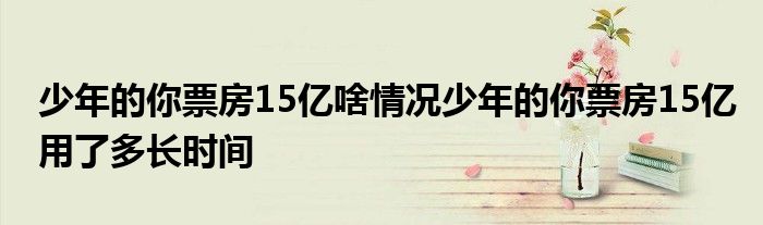 大家好.我是互联百科的羽儿,现在为大家解决以上少年的你票房15亿啥情况少年的你票房15亿用了多长时间的问题.