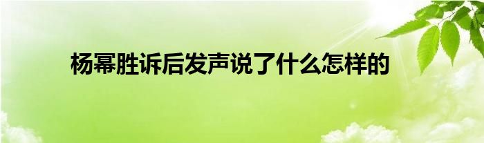 大家好.我是互联百科的羽儿,现在为大家解决以上杨幂胜诉后发声说了什么怎样的的问题.