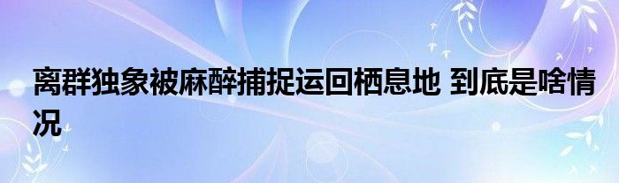 离群独象被麻醉捕捉运回栖息地 到底是啥情况