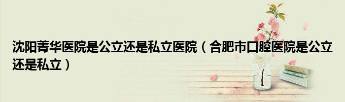 关于沈阳菁华医院是公立还是私立医院,合肥市口腔医院是公立还是私立这个很多人还不知道,今天菲菲来为大家解答以上的问题,现在让我们一起来看看吧!