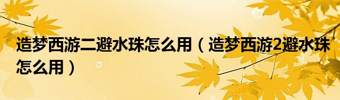 造梦西游二避水珠怎么用(造梦西游2避水珠怎么用)