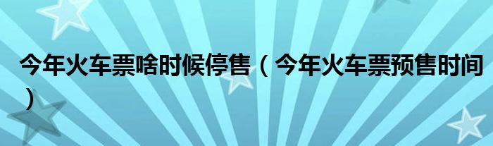 关于今年火车票啥时候停售,今年火车票预售时间这个很多人还不知道,今天菲菲来为大家解答以上的问题,现在让我们一起来看看吧!