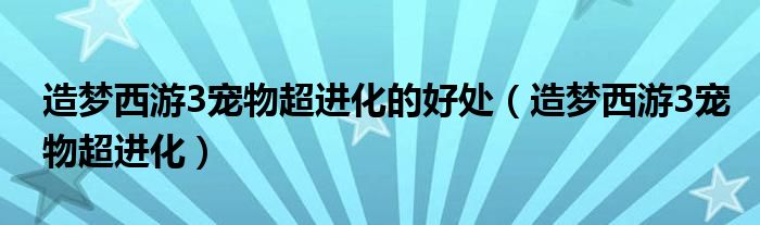 造梦西游3宠物超进化的好处(造梦西游3宠物超进化)