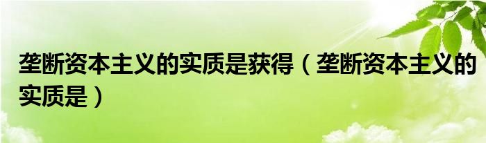垄断资本主义的实质是获得(垄断资本主义的实质是)