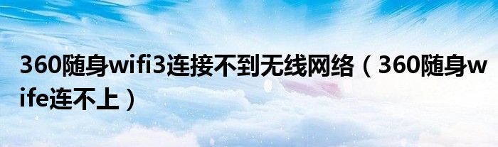 关于360随身wifi3连接不到无线网络,360随身wife连不上这个很多人还不知道,今天菲菲来为大家解答以上的问题,现在让我们一起来看看吧!