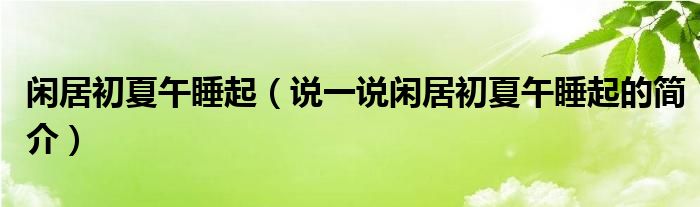 夏弥来为大家解答以下的问题,闲居初夏午睡起,说一说闲居初夏午睡起的简介,现在让我们一起来看看吧!
