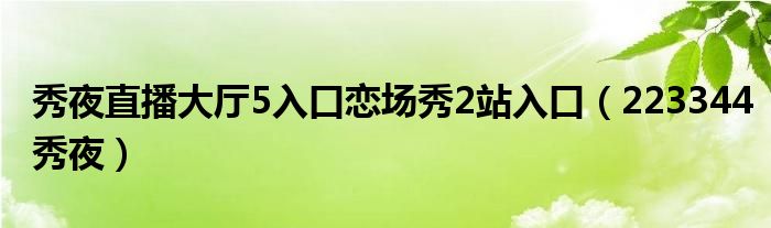 关于秀夜直播大厅5入口恋场秀2站入口,223344秀夜这个很多人还不知道,今天菲菲来为大家解答以上的问题,现在让我们一起来看看吧!