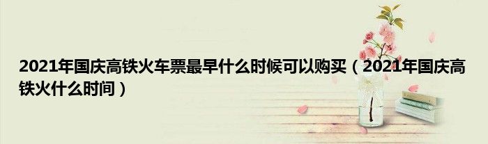 欢迎观看本篇文章,小升来为大家解答以上问题。2021年国庆高铁火车票最早什么时候可以购买,2021年国庆高铁火什么时间很多人还不知道,现在让我们一起来看看吧!