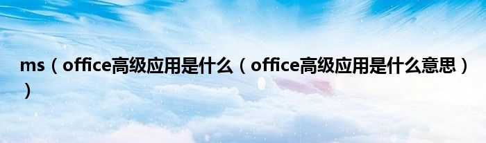 大家好,综合小编来为大家讲解下ms,office高级应用是什么,office高级应用是什么意思这个很多人还不知道,现在让我们一起来看看吧!