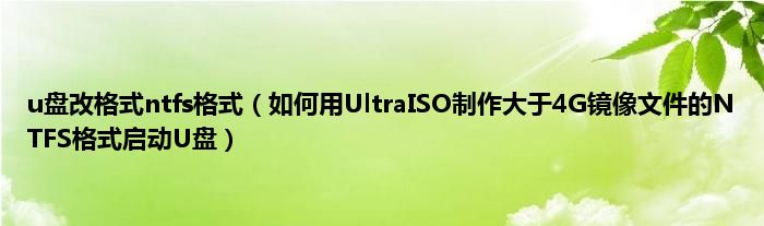 大家好,综合小编来为大家讲解下u盘改格式ntfs格式,如何用UltraISO制作大于4G镜像文件的NTFS格式启动U盘这个很多人还不知道,现在让我们一起来看看吧!