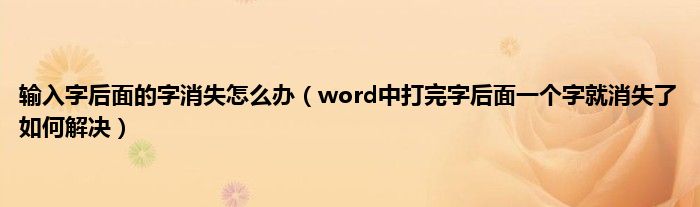 大家好,综合小编来为大家讲解下输入字后面的字消失怎么办,word中打完字后面一个字就消失了如何解决这个很多人还不知道,现在让我们一起来看看吧!