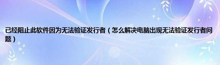 大家好,综合小编来为大家讲解下已经阻止此软件因为无法验证发行者,怎么解决电脑出现无法验证发行者问题这个很多人还不知道,现在让我们一起来看看吧!