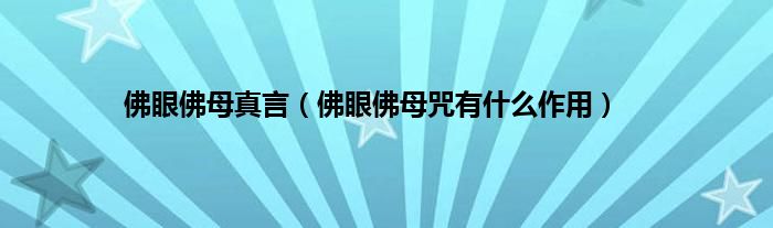 佛眼佛母真言(佛眼佛母咒有什么作用)