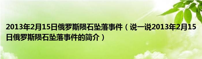 2013年2月15日俄罗斯陨石坠落事件(说一说2013年2月15日俄罗斯陨石坠落事件的简介)