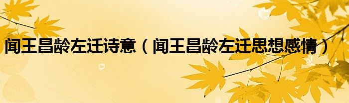 闻王昌龄左迁诗意(闻王昌龄左迁思想感情)