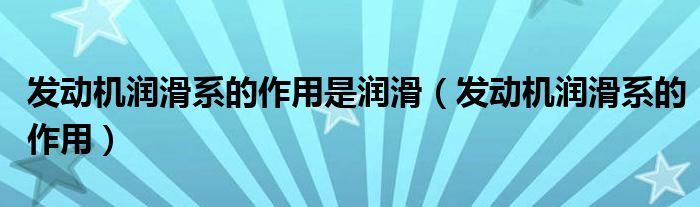 发动机润滑系的作用是润滑(发动机润滑系的作用)