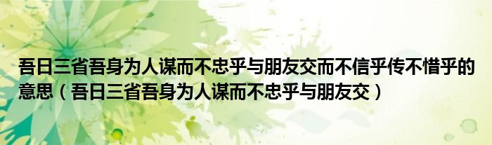 吾日三省吾身为人谋而不忠乎与朋友交而不信乎传不惜乎的意思(吾日三省吾身为人谋而不忠乎与朋友交)