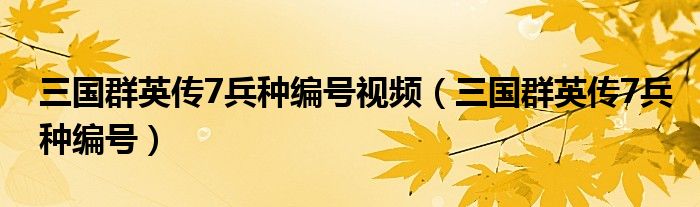 三国群英传7兵种编号视频(三国群英传7兵种编号)