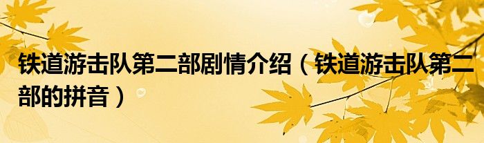 关于铁道游击队第二部剧情介绍,铁道游击队第二部的拼音这个很多人还不知道,今天菲菲来为大家解答以上的问题,现在让我们一起来看看吧!