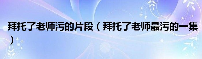 关于拜托了老师污的片段,拜托了老师最污的一集这个很多人还不知道,今天菲菲来为大家解答以上的问题,现在让我们一起来看看吧!