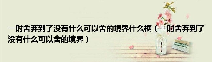 关于一时舍弃到了没有什么可以舍的境界什么梗,一时舍弃到了没有什么可以舍的境界这个很多人还不知道,今天菲菲来为大家解答以上的问题,现在让我们一起来看看吧!