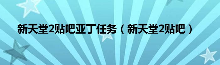 新天堂2贴吧亚丁任务(新天堂2贴吧)