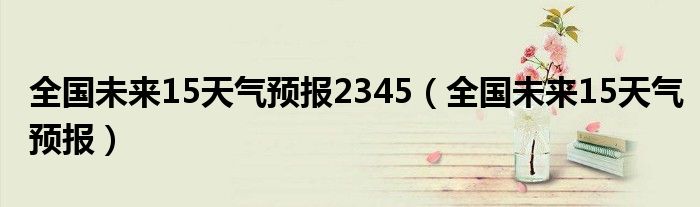 关于全国未来15天气预报2345,全国未来15天气预报这个很多人还不知道,今天菲菲来为大家解答以上的问题,现在让我们一起来看看吧!