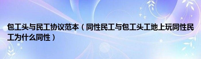 包工头与民工协议范本(同性民工与包工头工地上玩同性民工为什么同性)