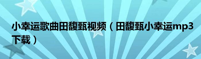 关于小幸运歌曲田馥甄视频,田馥甄小幸运mp3下载这个很多人还不知道,今天菲菲来为大家解答以上的问题,现在让我们一起来看看吧!