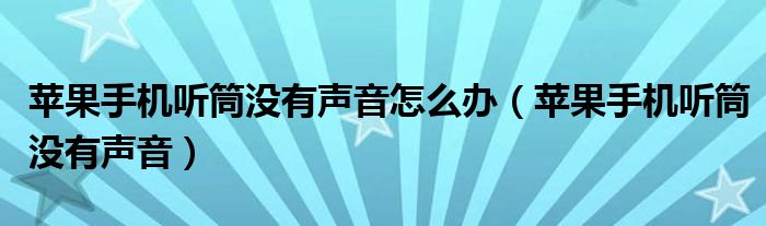 苹果手机听筒没有声音怎么办(苹果手机听筒没有声音)