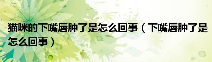 大家好,乐天来为大家解答以下的问题,猫咪的下嘴唇肿了是怎么回事,下嘴唇肿了是怎么回事很多人还不知道,现在让我们一起来看看吧!