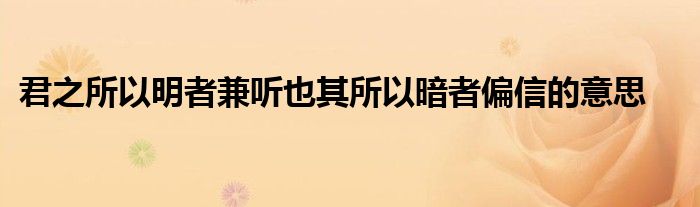 大家好,小联来为大家解答以上的问题。君之所以明者兼听也其所以暗者偏信的意思这个很多人还不知道,现在让我们一起来看看吧!