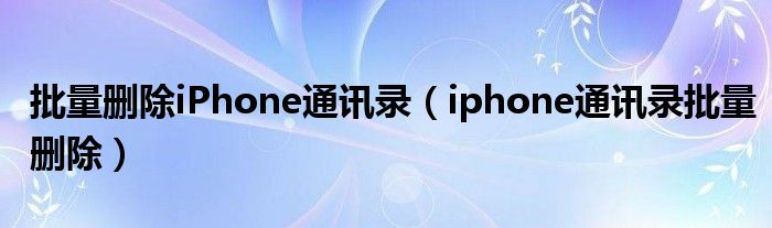 大家好,小晋来为大家解答以下问题,关于批量删除iPhone通讯录,iphone通讯录批量删除很多人还不知道,今天让我们一起来看看吧!