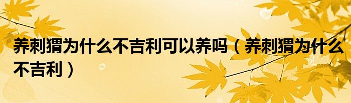 养刺猬为什么不吉利可以养吗(养刺猬为什么不吉利)
