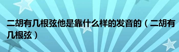 今天小饼为大家解答以下问题,关于二胡有几根弦他是靠什么样的发音的,二胡有几根弦很多人还不知道,现在让我们一起来看看吧!