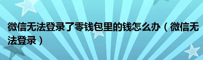 微信无法登录了零钱包里的钱怎么办(微信无法登录)