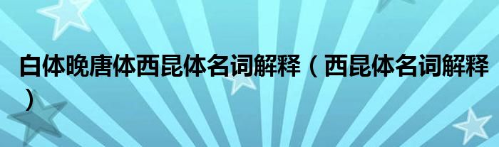 大家好,我是小科,我来为大家解答以上问题。白体晚唐体西昆体名词解释,西昆体名词解释很多人还不知道,现在让我们一起来看看吧!