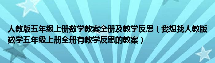 人教版五年级上册数学教案全册及教学反思(我想找人教版数学五年级上册全册有教学反思的教案)
