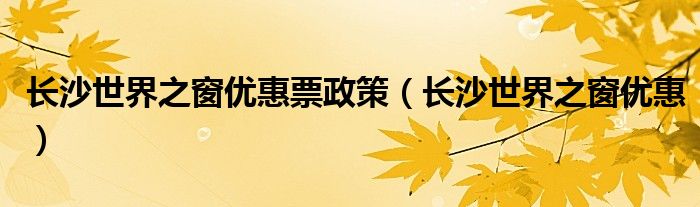 长沙世界之窗优惠票政策(长沙世界之窗优惠)
