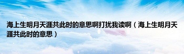 大家好,我是小科,我来为大家解答以上问题。海上生明月天涯共此时的意思啊打扰我读啊,海上生明月天涯共此时的意思很多人还不知道,现在让我们一起来看看吧!
