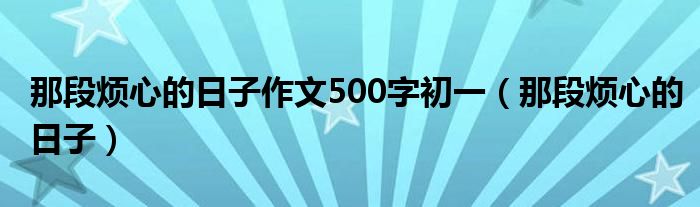 大家好,我是小科,我来为大家解答以上问题。那段烦心的日子作文500字初一,那段烦心的日子很多人还不知道,现在让我们一起来看看吧!