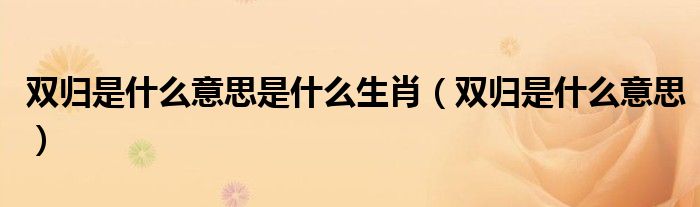 大家好,我是小科,我来为大家解答以上问题。双归是什么意思是什么生肖,双归是什么意思很多人还不知道,现在让我们一起来看看吧!
