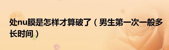 大家好,我是小科,我来为大家解答以上问题。处nu膜是怎样才算破了,男生第一次一般多长时间很多人还不知道,现在让我们一起来看看吧!